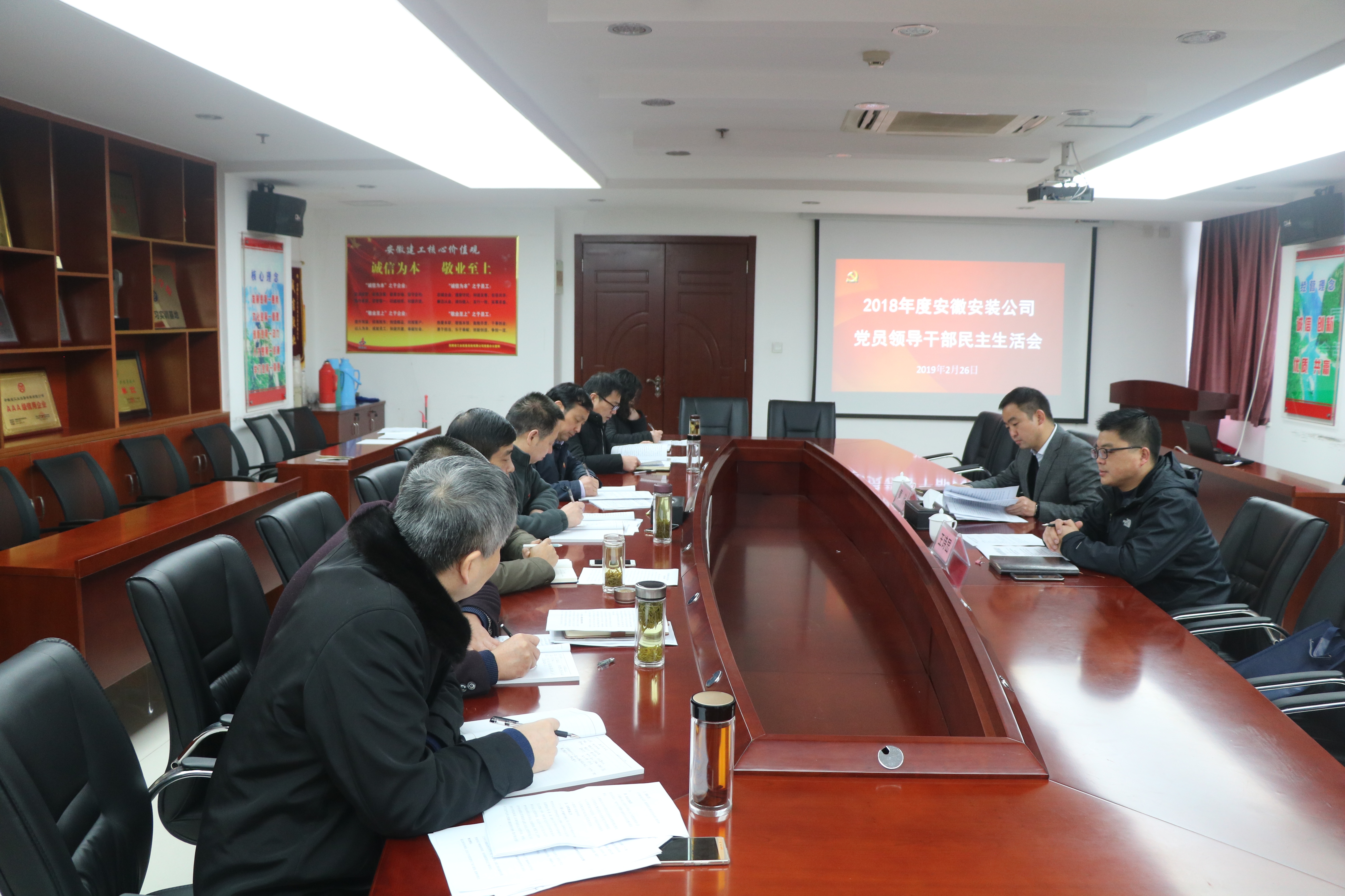 為深入學(xué)習(xí)貫徹習(xí)近平新時(shí)代中國(guó)特色社會(huì)主義思想,根據(jù)建工控股黨委統(tǒng)一部署要求,2月26日下午,安徽安裝公司黨委召開(kāi)2018年度黨員領(lǐng)導(dǎo)干部民主生活會(huì)。股份公司副總經(jīng)理黃代,集團(tuán)公司團(tuán)委書(shū)記、黨委工作部副部長(zhǎng)王詩(shī)旵到會(huì)指導(dǎo)。會(huì)議由公司黨委書(shū)記、董事長(zhǎng)胡六中主持,公司領(lǐng)導(dǎo)班子成員參加會(huì)議。