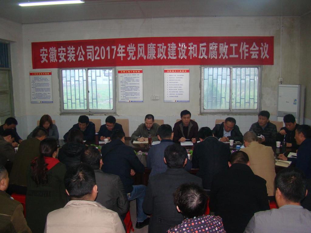 3月30日上午,安徽安裝公司黨委在安徽省白湖監(jiān)獄管理分局罪犯醫(yī)療綜合樓工程項(xiàng)目部召開(kāi)2017年黨風(fēng)廉政建設(shè)和反腐敗工作會(huì)議,公司領(lǐng)導(dǎo)班子成員、中層以上管理人員、部分項(xiàng)目經(jīng)理及白湖監(jiān)獄罪犯綜合樓項(xiàng)目管理干部50多人參加了會(huì)議。會(huì)議由公司紀(jì)委書(shū)記、工會(huì)主席李寬旭主持。