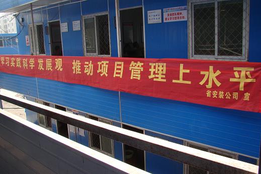 省政務(wù)服務(wù)中心及綜合樓和合肥中心醫(yī)院項目屬省、市重點(diǎn)工程之一。由多家大中型施工企業(yè)共同承建。我公司承擔(dān)的安裝工作量分別在1582萬和2800萬以上,是具有相當(dāng)規(guī)模和社會影響的工程項目。合肥項目黨支部在開展第二批實(shí)踐科學(xué)發(fā)展觀活動中,因地制宜地開展宣傳活動。分別在這兩個項目施工現(xiàn)場懸掛了《深入開展學(xué)習(xí)實(shí)踐科學(xué)發(fā)展觀活動》和《學(xué)習(xí)實(shí)踐科學(xué)發(fā)展觀推動項目管理上水平》的橫幅標(biāo)語。目前是整個施工現(xiàn)場開展學(xué)習(xí)實(shí)踐科學(xué)發(fā)展觀活動中唯一在現(xiàn)場宣傳的一家施工企業(yè)。