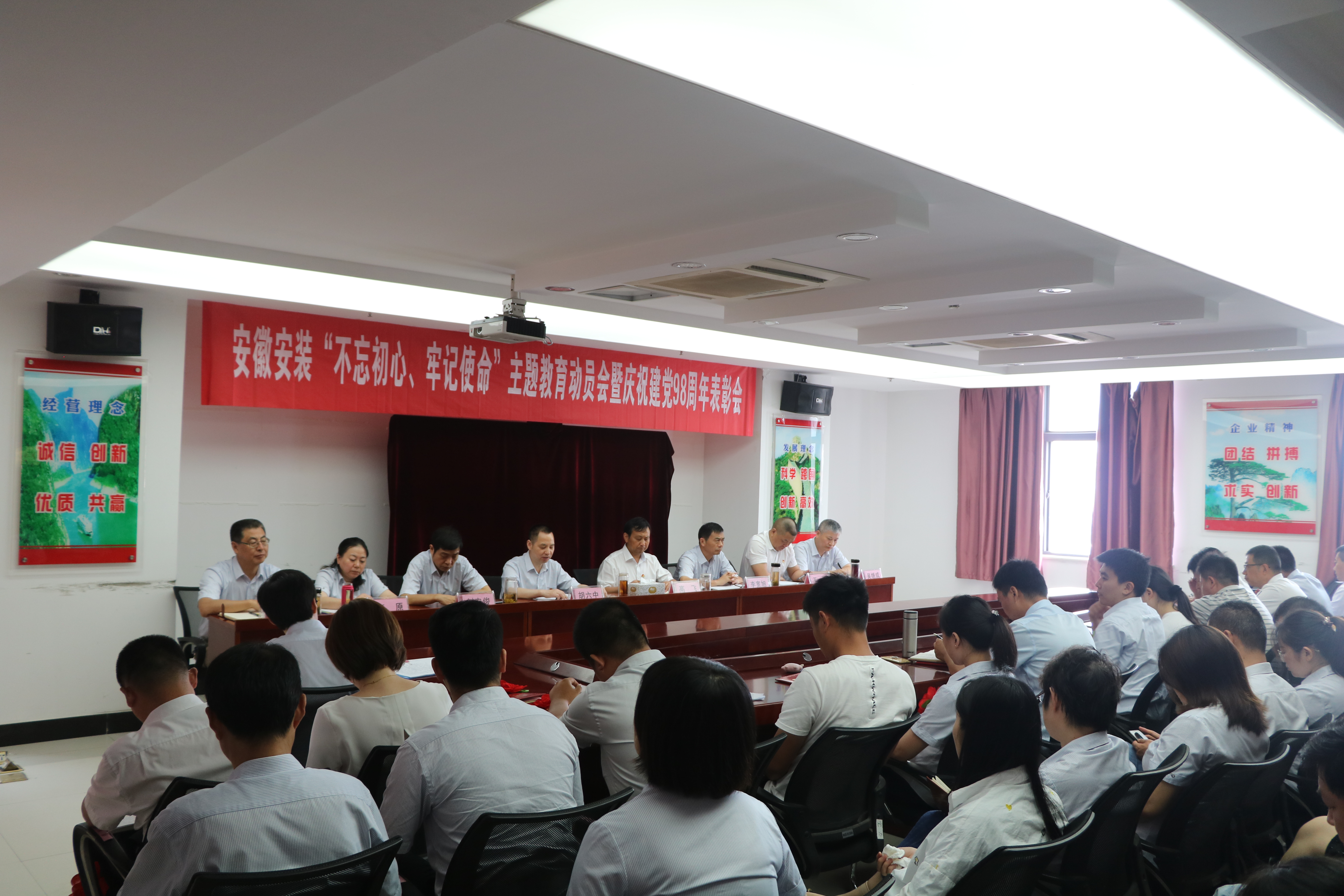 為慶祝中國(guó)共產(chǎn)黨建黨98周年,扎實(shí)開(kāi)展好“不忘初心、牢記使命”主題教育,不斷提升基層黨建工作整體水平。6月27日上午,安徽安裝公司黨委召開(kāi)慶祝建黨98周年表彰會(huì)暨黨課報(bào)告會(huì)。公司領(lǐng)導(dǎo)班子成員、機(jī)關(guān)部門正副職、機(jī)關(guān)在崗黨員、分公司領(lǐng)導(dǎo)班子成員和受表彰的先進(jìn)基層黨組織、優(yōu)秀共產(chǎn)黨員和優(yōu)秀黨務(wù)工作者共70余人參加會(huì)議。會(huì)議由公司紀(jì)委書記、工會(huì)主席李寬旭主持。