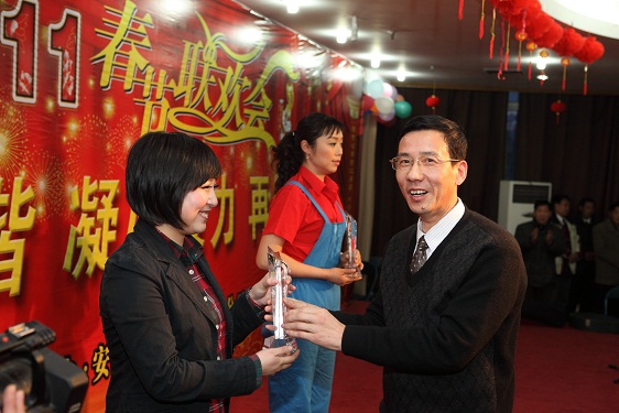 公司總經(jīng)理王軍邦代表公司黨政領(lǐng)導(dǎo)班子致新春賀詞,感謝一年來上級領(lǐng)導(dǎo)的大力支持和關(guān)懷,感謝全體員工的辛勤付出和熱愛。他說,過去的2010年里,在集團公司的領(lǐng)導(dǎo)下,公司上下同心協(xié)力,完成產(chǎn)值10.08億元,各方面工作取得了優(yōu)異的成績,生產(chǎn)經(jīng)營快速發(fā)展,管理模式逐步成型,資源整合不斷優(yōu)化,文化載體日漸豐富,品牌效應(yīng)日漸凸顯,凝聚力和執(zhí)行力不斷提高,各項工作穩(wěn)步邁上了新臺階,在行業(yè)內(nèi)得到了充分的肯定,實現(xiàn)了“十一五”的完美收官。在“十二五”開局之年里,我們將緊密依托集團公司領(lǐng)導(dǎo),以提高經(jīng)濟效益為重心,團結(jié)協(xié)作,迎難而上,銳意進取,共創(chuàng)2011事業(yè)輝煌!