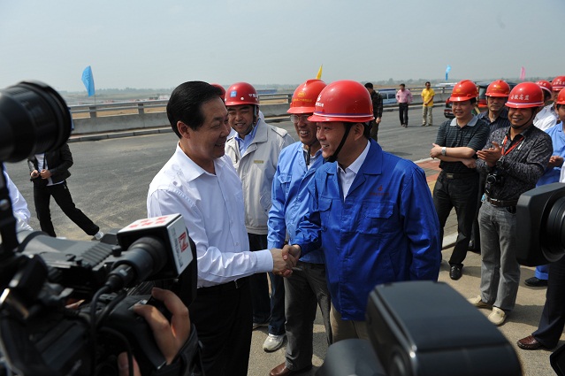 5月12日上午十時許,省委書記張寶順,省委常委、合肥市委書記孫金龍,合肥市市長吳存榮,市委秘書長兼新橋機場建設總指揮安列等一行蒞臨合肥新橋國際機場航站樓工程指導、檢查。安徽省工業(yè)設備安裝公司、中建八局、北京裝飾、中建二十四局、中煤鋼構(gòu)各單位主要領(lǐng)導陪同檢查。